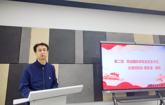 高东波书记代表邓迪国际学院党总支、分党校致辞,对培训班的顺利开班表示热烈祝贺,对全体学员表示诚挚欢迎。他指出,在党的二十届三中全会胜利召开、国家迈上全面建设社会主义现代化新征程的重要时刻,举办本期发展对象培训班意义特殊。他强调,全体学员要珍惜此次系统学习党的创新理论的机会,筑牢信仰根基,把稳思想之舵,并对此提出三点希望:一要夯实理论功底,深入学习习近平新时代中国特色社会主义思想,不断提升政治判断力与思想定力;二要端正入党动机,锤炼党性修养,树立正确的世界观、人生观、价值观,自觉践行社会主义核心价值观;三要勇担时代使命,拓展国际视野,提升跨文化沟通能力,努力在国际舞台讲好中国故事,成为中外文明交流的桥梁。